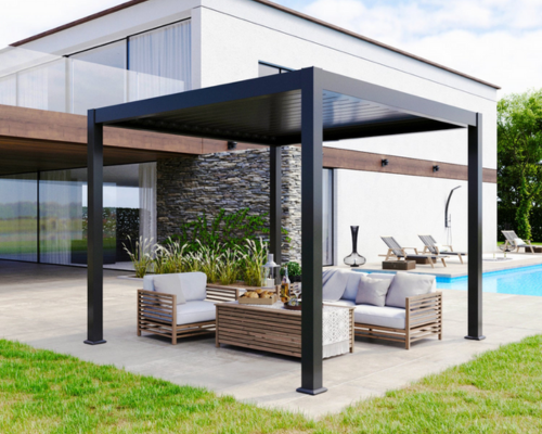 - Moderne esthetiek: met hun strakke lijnen en eigentijdse ontwerpen voegen onze aluminium pergola's een vleugje verfijning toe aan elke buitenruimte.